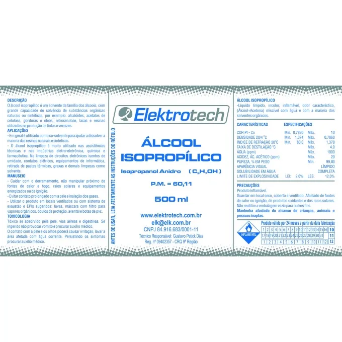 O álcool isopropílico é largamente utilizado nas assistências técnicas e nas indústrias eletro-eletrônica, química e farmacêutica, sendo aplicado na limpeza de circuitos eletrônicos por ser isento de umidade, contatos elétricos, equipamentos de informática, retirada de pastas térmicas, graxas e demais limpezas como solvente. É também utilizado no preparo de soldagem SMD.