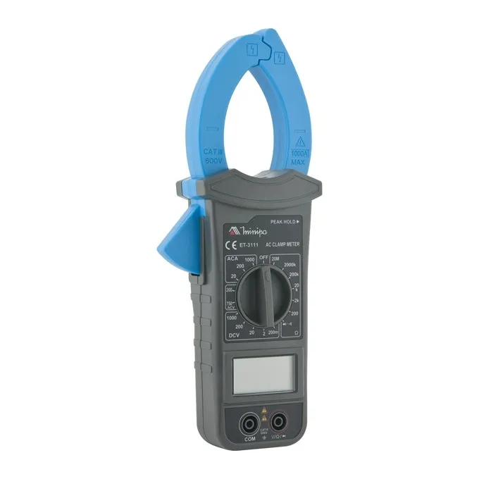 O alicate amperímetro ET-3111 possui mudança de faixa manual e leitura máxima de 1999 contagens. Foi projetado para uso em laboratório, em casa ou em qualquer circunstância onde a medida de corrente elevada seja necessária de acordo com sua categoria de segurança.