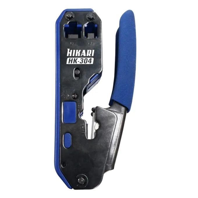 O Alicate de Crimpar HK-304 é 3 em 1 - Corta, Decapa e Crimpa conectores RJ45, RJ12 e RJ11. É ideal para crimpagem de conectores utilizados em redes de dados e de voz.