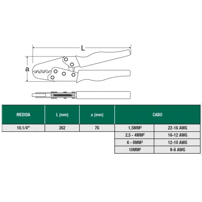 SATA - ALICATE CRIMP TERMINAL S/ ISOLACAO 6/22AWG 10.1/4" - ST91106ST