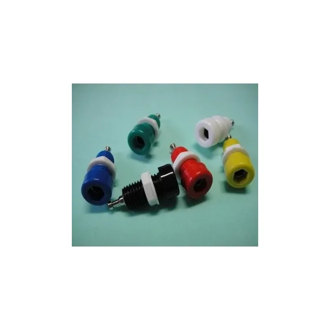 | Características: Borne: Ø 4 mm - Isolação em Polipropileno - Bucha em Latão - Acabamento Superficial Niquelado - Porca Termoplástico Especificações Técnicas: Resistência de Isolamento:> 300.000 M ohm a 500 Vcc 25 ºC 70 % U.R. Resistência de Contato Inicial máx.: 1m ohm Rigidez Dielétrica Típica: 2000 VRMS Corrente Nominal: 15 A Disponível nas Cores: PT - VM - VD - AM - AZ - BR - CZ |