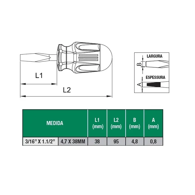 BELZER - CHAVE DE FENDA COTOCO 3/16 X 1.1/2" ERG - 215101BR