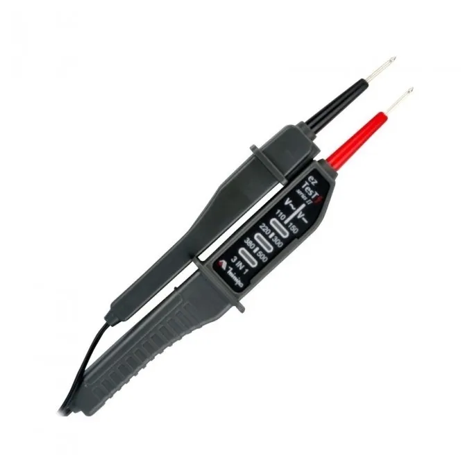 O EZ TEST II é um instrumento utilizado para testar tensão AC/ DC de forma segura, rápida e precisa, mostrando em três níveis diferentes. Isto ajudará a encontrar problemas em circuitos e equipamentos, e verificar se os circuitos estão desligados corretamente antes... Mais detalhes