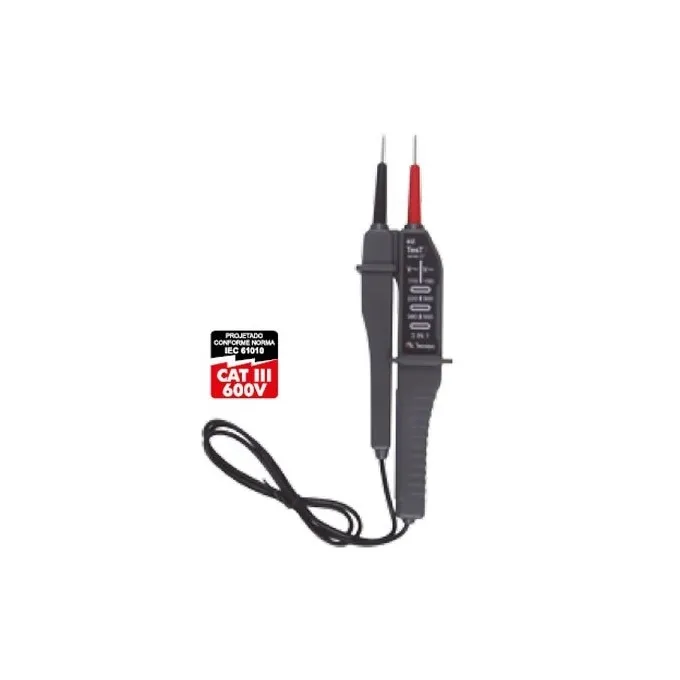 • Testador de Tensão AC/DC • Extensão do Cabo: Aprox. 800mm • Dimensões: 185(A) x 26.5(L) x 23(P)mm • Garantia: 3 (três) meses a partir da data de aquisição.