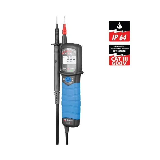 categoria de sobretensão CAT III 600V e IP64 - À prova de poeira e Protegido contra jorro de água.