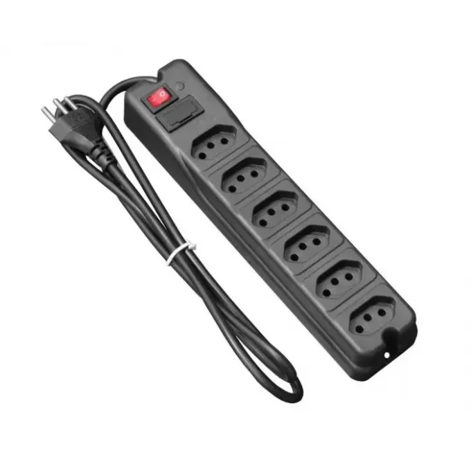 Desenvolvido para proteger contra sobretensão e facilitar a ligação de vários aparelhos em uma só tomada. Com 6 tomadas acompanham chave liga-desliga, led indicador de funcionamento, fusível com suporte para fácil troca, caso necessário, e suporte para fixação. Este produto possui tomadas de acordo com o NOVO PADRÃO NBR14136.