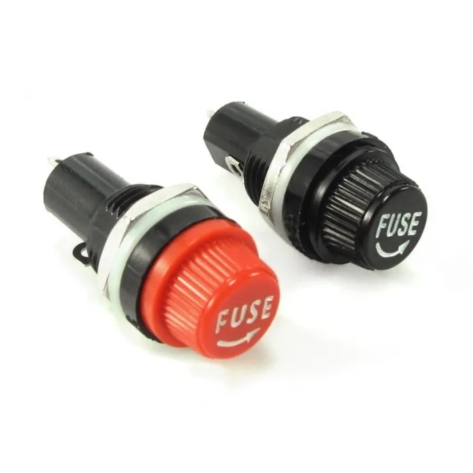 Nas cores preto ou vermelho, corrente máxima de 10A, utilizado para fixação em chapa e fusiveis de 5x20mm; Item vendido com embalagem multipla de 10 pecas.