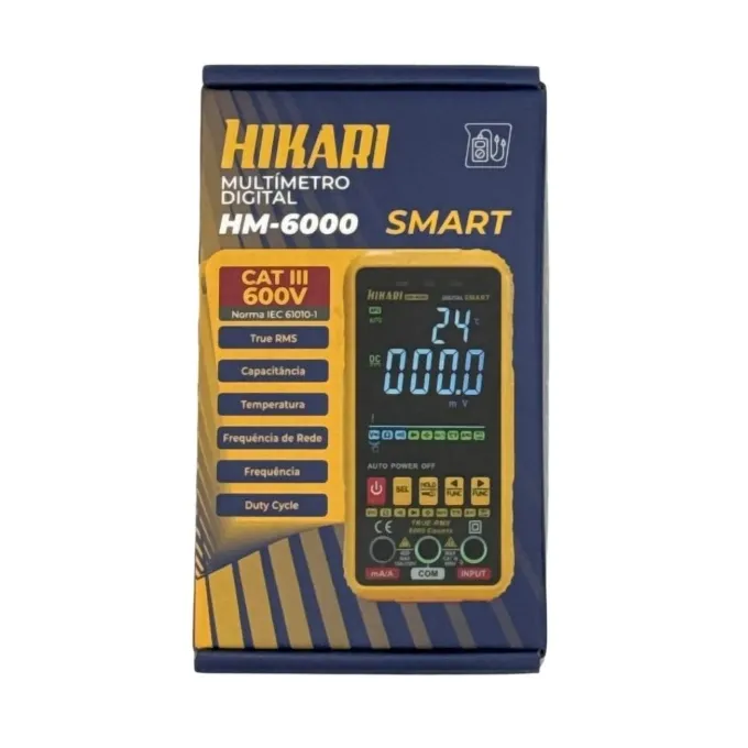 O Multímetro Digital Modelo HM-6000 tem categoria de segurança CATIII 600V, é um equipamento multifuncional inteligente(smart), com medidas precisas, confiável e seguro para analise e soluções de problemas elétricos e eletrônicos.
