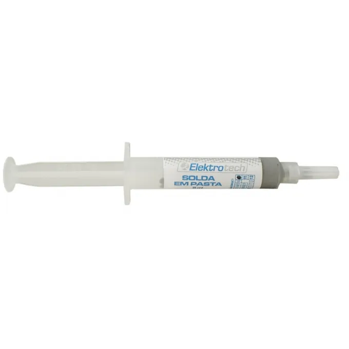 Descrição: Mistura homogênea e cineticamente estável de diminutas partículas esféricas de estanho, fluxo, solvente e um agente em suspensão. É utilizada para soldagem de componentes SMD.
